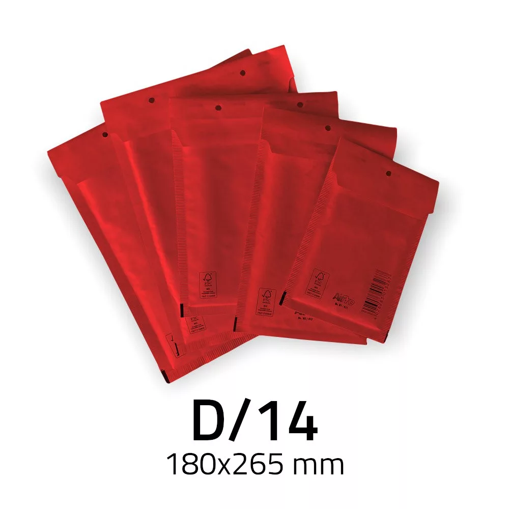 Piros légpárnás boríték, D/14 180x265 mm-es külső méretben.
