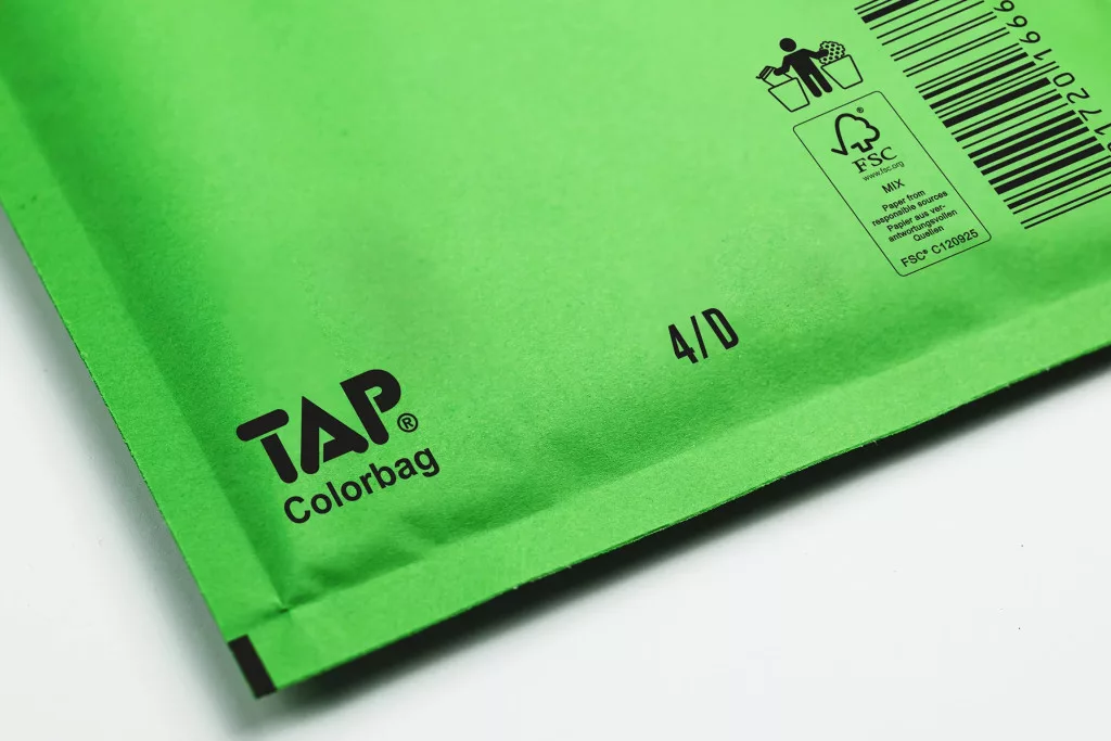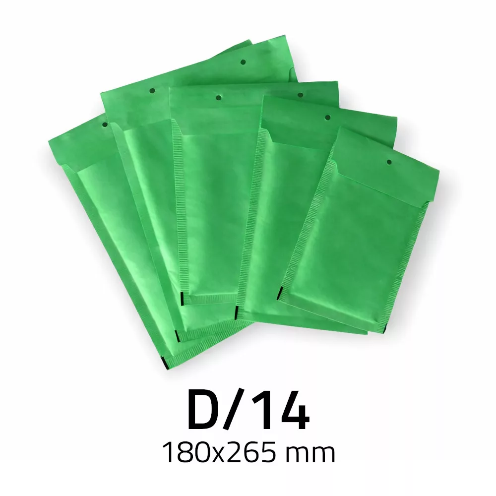 Zöld légpárnás boríték, D/14 180x265 mm-es külső külső méretben.