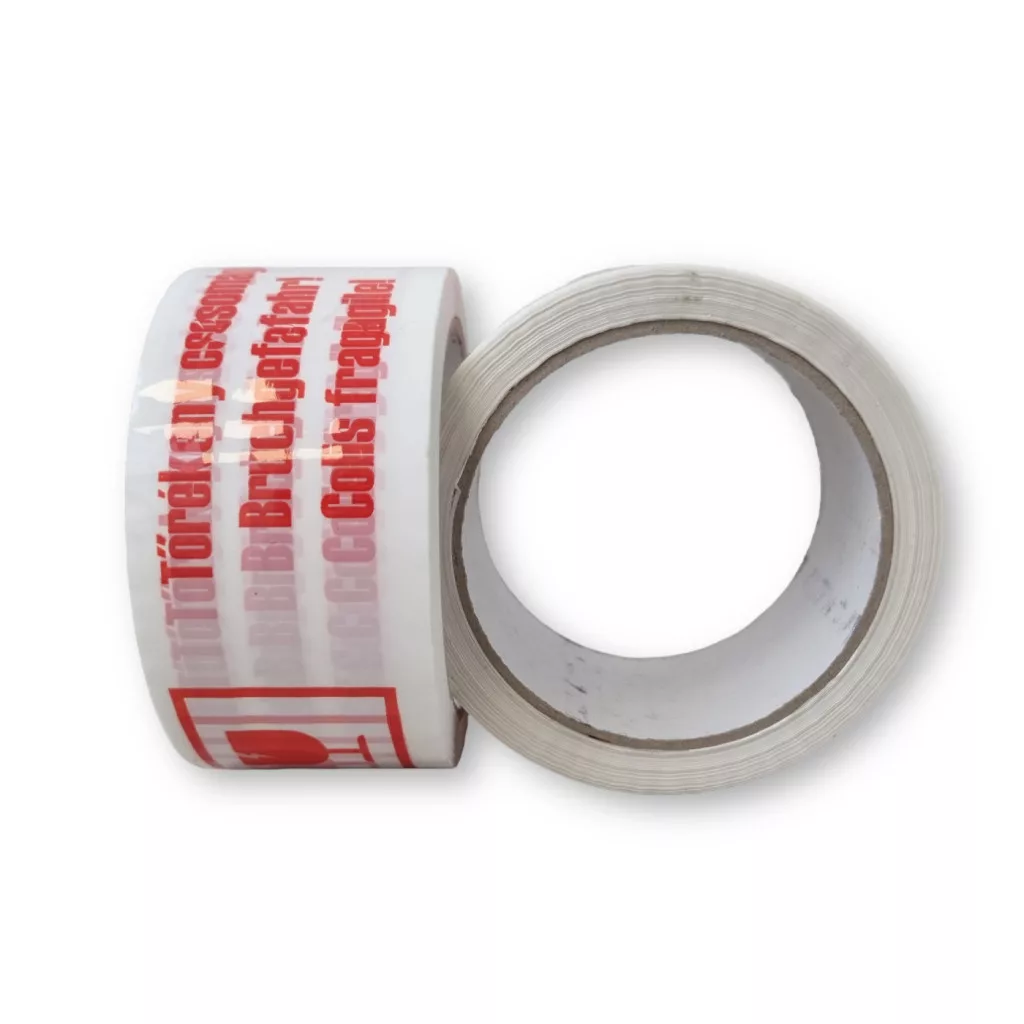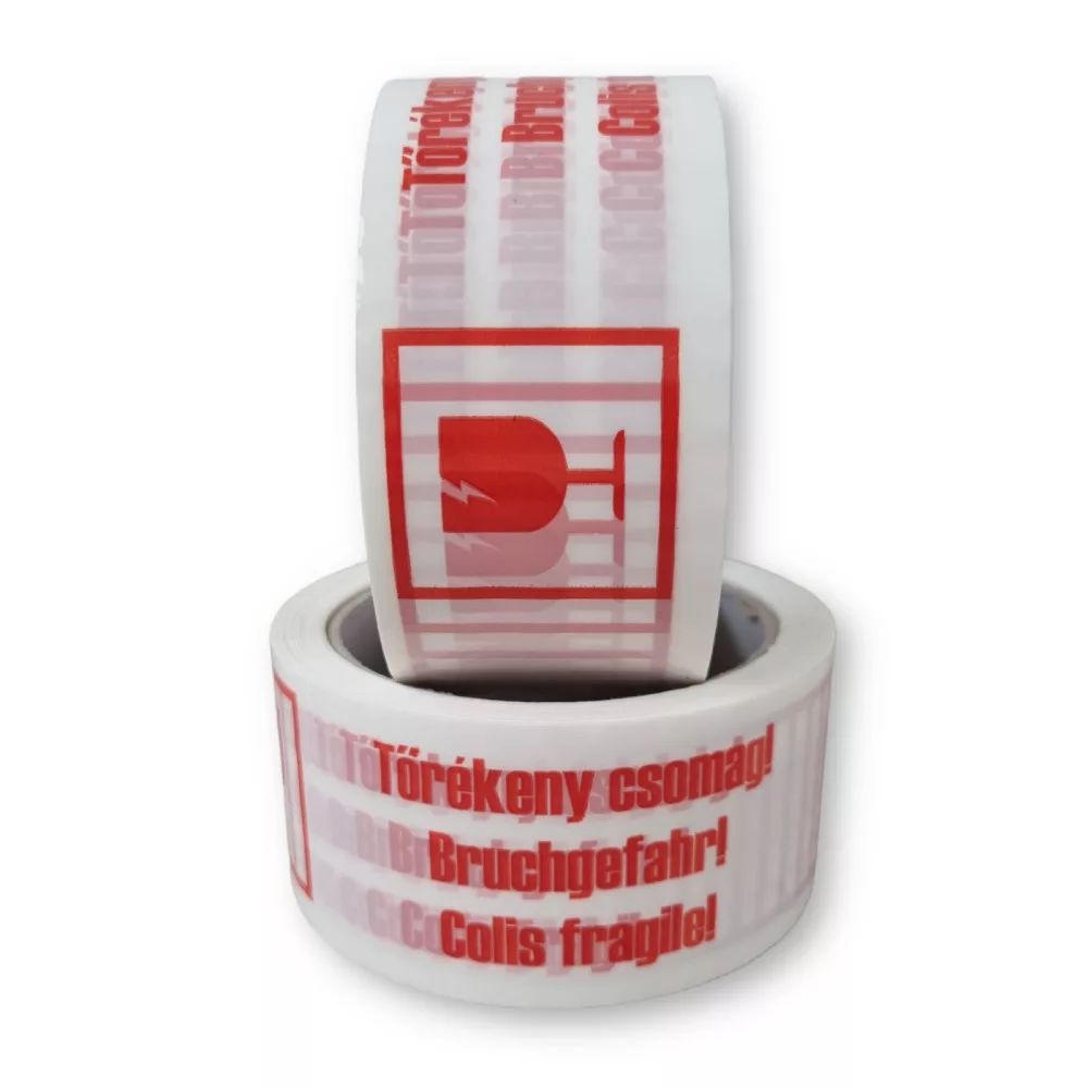 Áruvédelmi „Törékeny csomag” felirattal ellátott ragasztószalag.